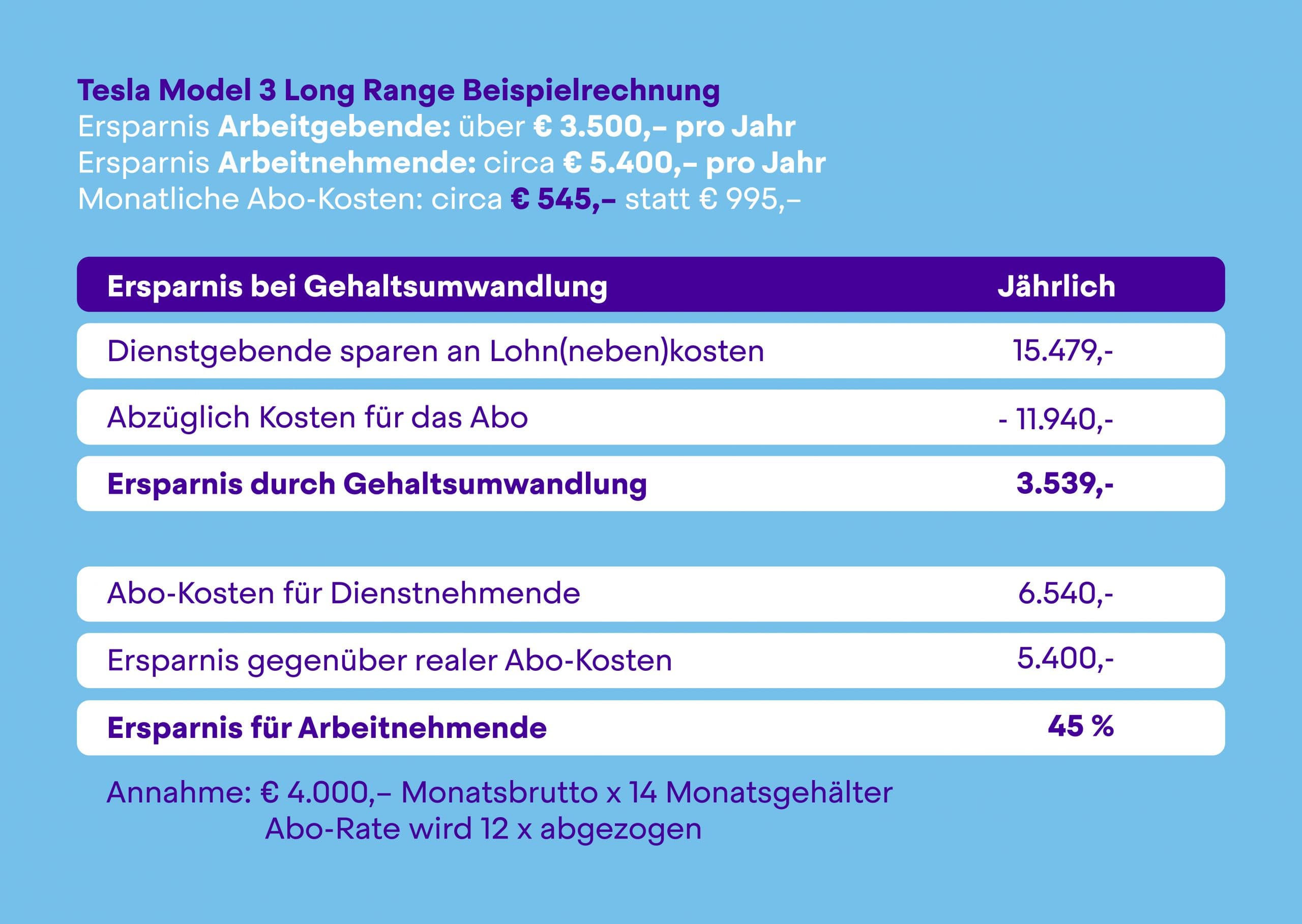 Für nur knapp € 545,– im Monat ein Tesla Model 3 Long Range fahren. Ohne Anzahlung und ohne Zusatzkosten.