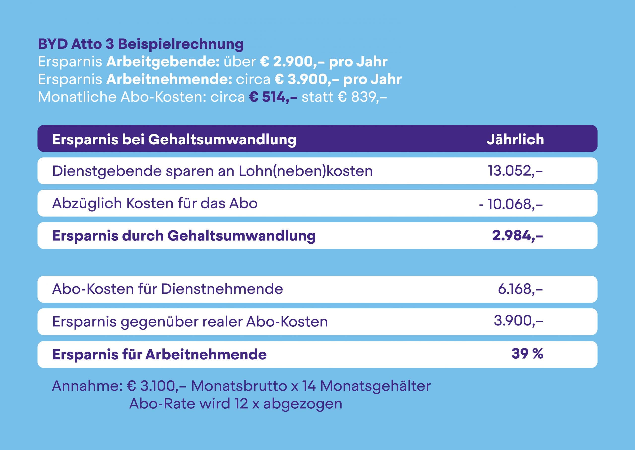 Für nur knapp € 514,– im Monat ein BYD Atto 3 fahren. Ohne Anzahlung und ohne Zusatzkosten.